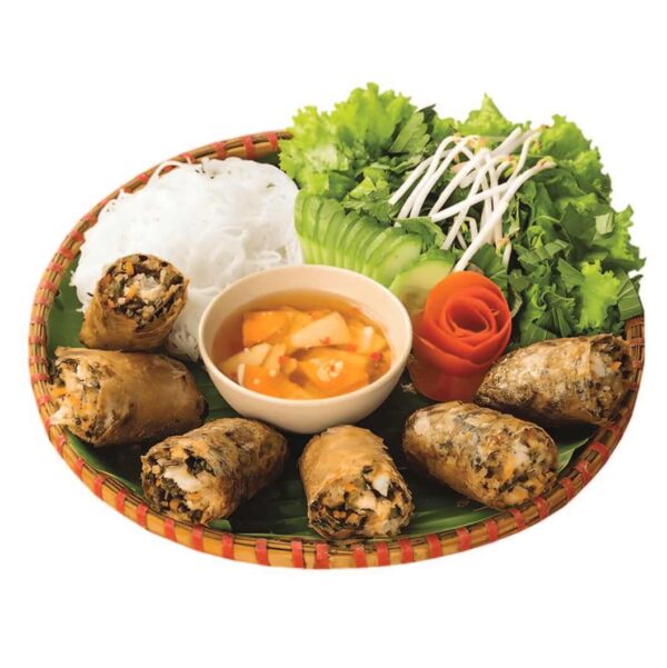 Bún vékony rizstészta tavaszi tehercesel, édes-savanvú halszósz, vegyes saláta, koriander