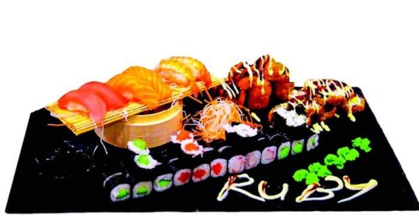 6 sült csirke maki, 6 sült lazac maki, 6 nirigi (2 lazac, 2 tonhal, 2 rák),