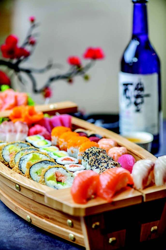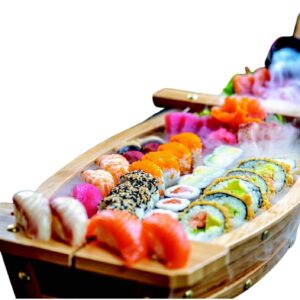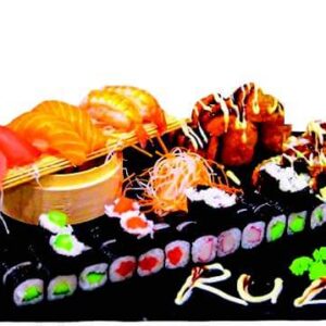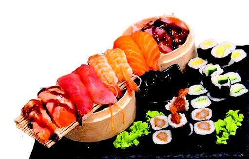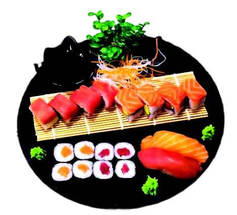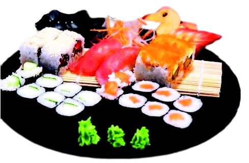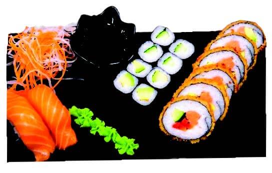 4 california uramaki, 4 surimi uramaki, 8 lazac maki, 8 uborka maki, 2